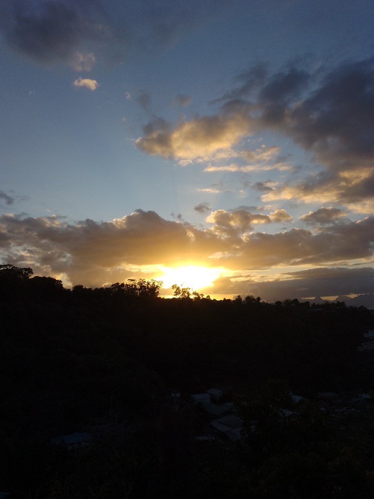 We drove down from Papaeete to Teahupo’o to my daughter and son-in-law’s campsite, only 500 meters from the waves where the 2024 surfing events for the summer Olympics were held. Grandma Mamie’s well-tried Nissan people carrier welcomes weekend odds and ends without complaining about packing space. When my daughter takes the wheel, she puts the car into steady motion and then tends to relax by crossing her left leg over the right thigh without, of course—phew—grabbing the left ankle with her right hand.