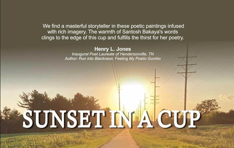 The starburst of sophisticated sensory images in Dr Santosh Bakaya’s collection of seventy-eight poems, Sunset in a Cup, offers an epicurean feast of the visual, auditory, olfactory, gustatory, and tactile, uninhibitedly flirting with the senses. Emily Dickinson’s poem inspires the title, and Santosh Bakaya’s introductory prose is poetical. She retrieves and owns Dickinson’s imagery, elevating it to another dimension with laudable control over each thematic pearl, strung with passion. A collection of seventy-eight previously published poems, now consolidated in a single volume for justified impact and pleasure.