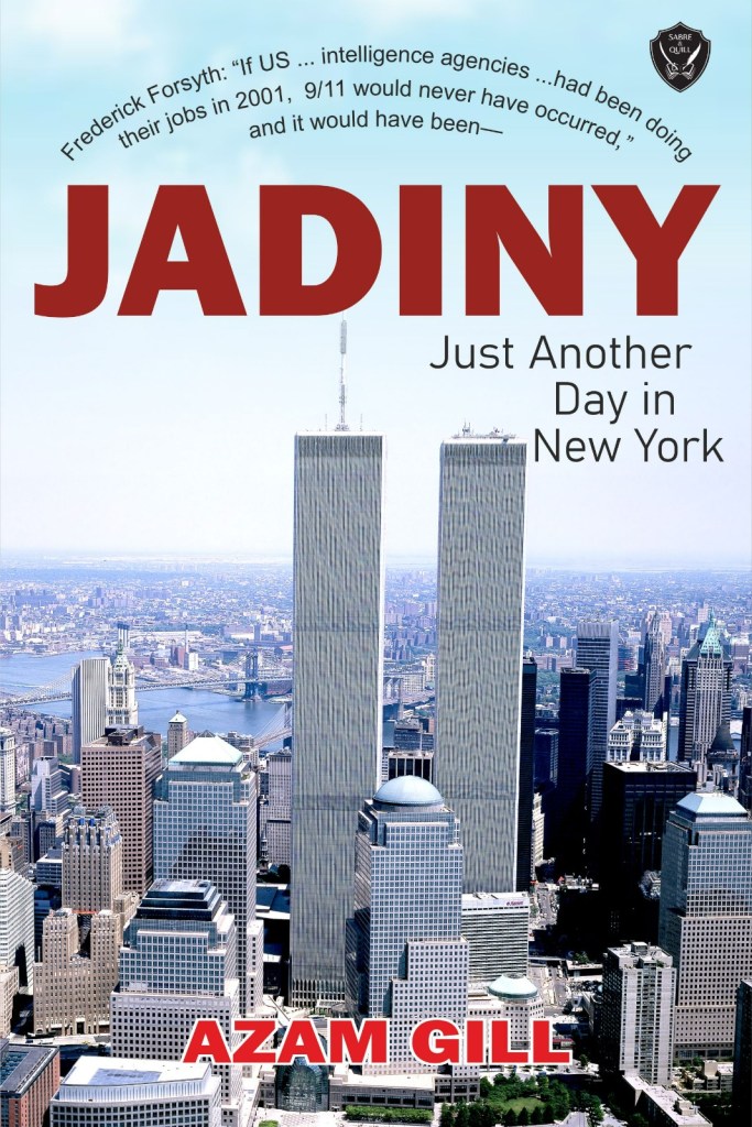 Frederick Forsyth of The Day of the Jackal fame: “If the nine inner US intelligence agencies and the seven outer agencies had been doing their jobs in 2001, 9/11 would never have occurred.” And it would have been — JADINY: JUST ANOTHER DAY IN NEW YORK— Azam Gill’s didactic, counterfactual, historical thriller about the 9/11 twin tower attacks, published by Sabre & Quill, available on Amazon worldwide.